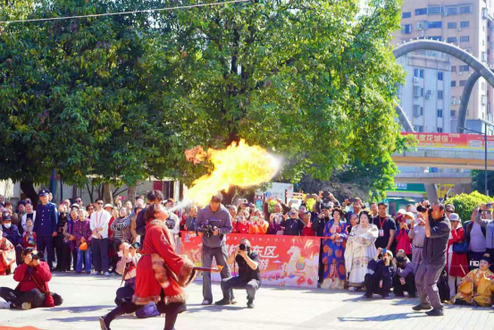 六天时间里,舞龙舞狮气势磅礴,峨眉武术刚劲有力,布马舞灵动飘逸,汉服巡游古韵悠然,秧歌表演热情奔放,财神送福妙趣横生……十余支民俗队伍轮番登场,将三线建设的阳刚之气与非遗的柔美之韵巧妙融合,化作一场既有文化厚度、又充满人间烟火气的“文化年味大餐”。